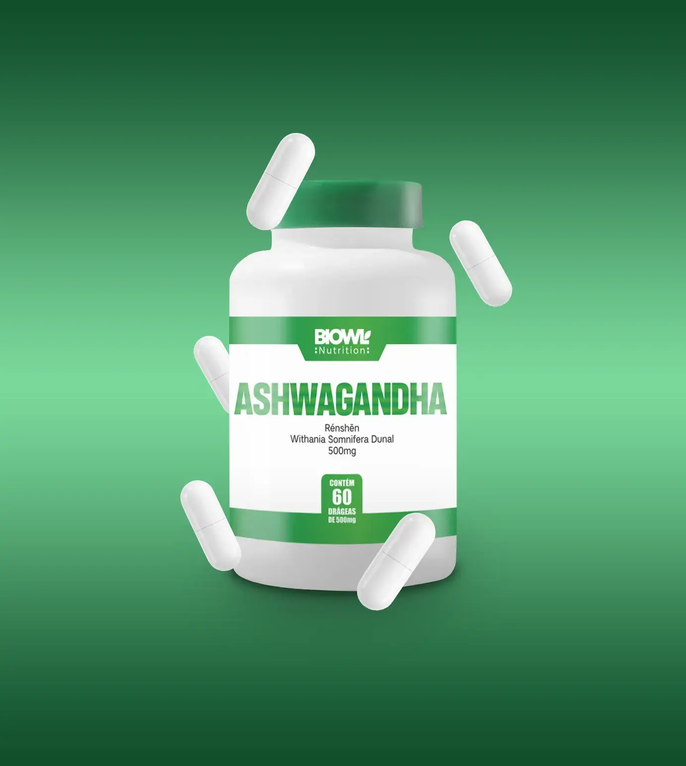 Ashwagandha é um extrato natural adaptogênico que, ao agir no equilíbrio hormonal, auxilia na redução do estresse e da ansiedade. Contribui para melhor foco, sono e vitalidade. Uso adulto. Ingerir 1 cápsula ao dia com água.
