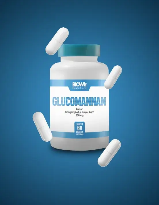 Glucomannan é uma fibra solúvel que, ao absorver água, promove grande saciedade. Auxilia na perda de peso, regulação intestinal e controle de açúcar e colesterol. Uso adulto. Ingerir 2 cápsulas com água antes das principais refeições.