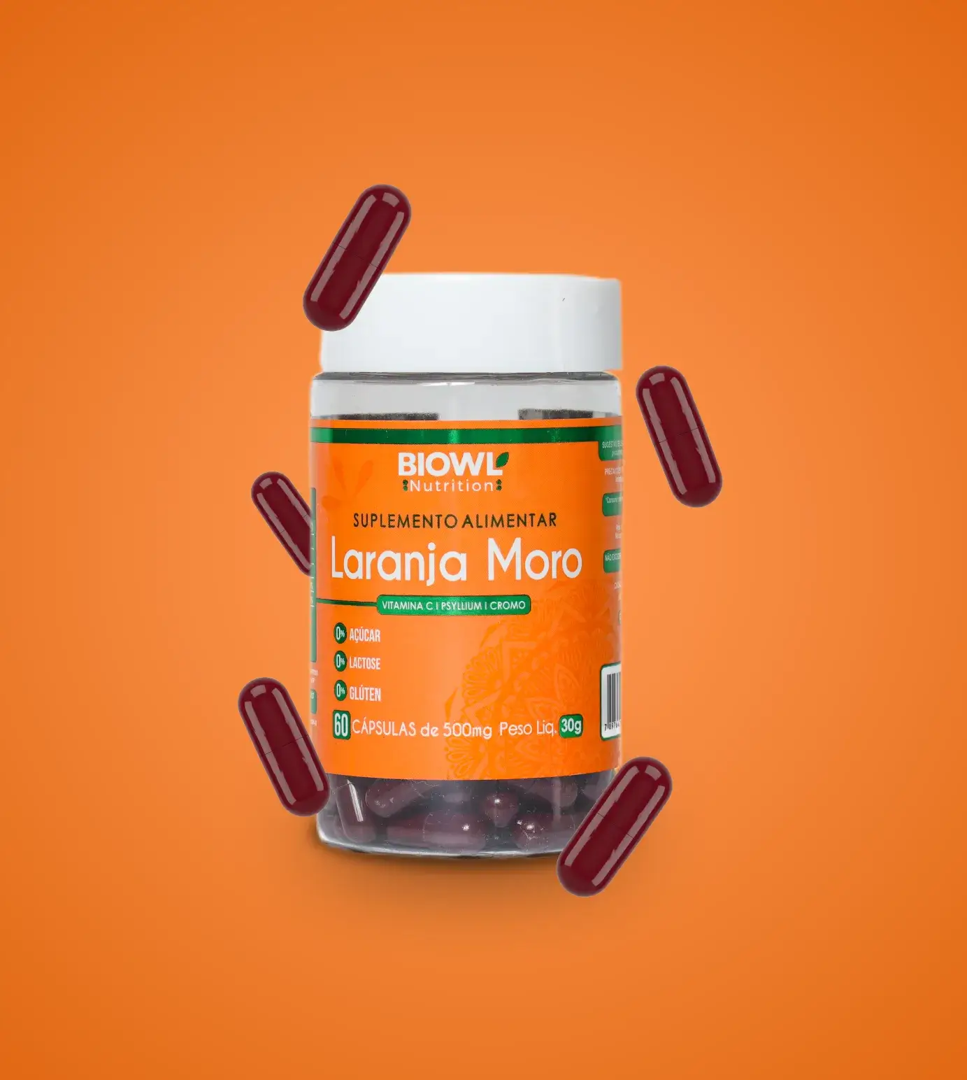 Laranja Moro é um extrato natural rico em antocianinas que, ao atuar no metabolismo, auxilia na redução de gordura corporal e medidas. Contribui para controle de peso, açúcar e colesterol. Uso adulto. Ingerir 1 cápsula ao dia com água.